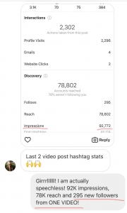 I started with 700 followers and they weren’t organic followers. I was doing engagement groups and follow unfollow. It just wasn’t working. Fast forward to now and I’m already at 2000 followers and I get A TON OF ENGAGEMENT. Before I was getting 30 likes and 1-2 comments and now I’m getting over 250 likes per post and over 100 comments ON EACH POST.